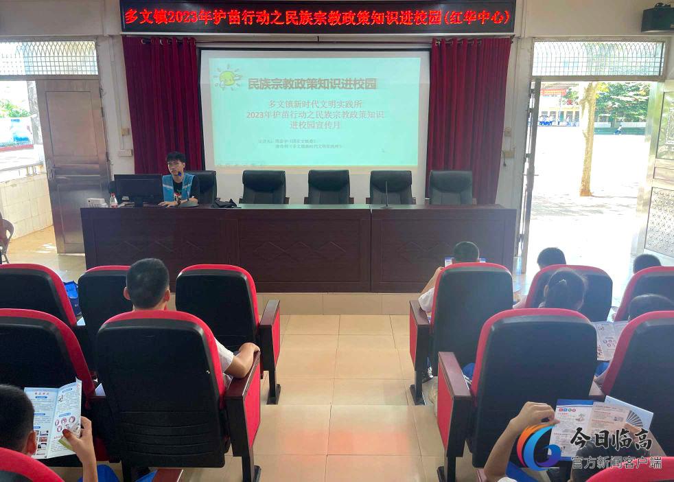 6月27日上午,多文镇新时代文明实践所联合多部门在红华中心学校开展护苗行动民族宗教政策知识进校园活动。