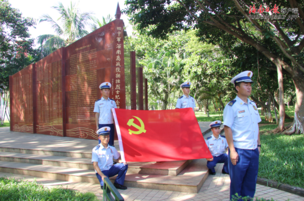全体人员在海南解放公园热血丰碑下,面对党旗重温了入党誓词。铮铮誓言,久久回荡,传达了消防救援人员勇敢无畏的心声。