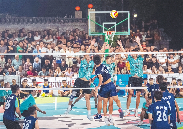 10月11日晚,屯昌县2025年排球联赛(屯昌“村VA”)在该县乌坡镇青梯村火热进行。屯昌“村VA”比赛从10月4日持续到10月26日,来自全县的10支队伍将分为南北两个赛区进行比拼,丰富百姓文化生活,激发乡村发展活力。海南日报全媒体记者 李天平 摄