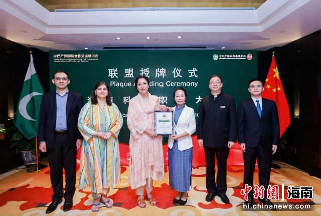 韩凤芝代表学校接受中巴国际产教合作联盟授牌。她表示,此次海南科技职业大学加入“中巴国际产教合作联盟”,标志着学校教育国际化又迈上新台阶。未来,学校将依托联盟平台,深化与巴基斯坦及“一带一路”沿线国家院校、企业的合作,共建国际化课程体系与实践基地,联合培养适配国际产能需求的高端技能人才,为服务国家战略与海南自贸港建设贡献海科大力量。(来源:海南科技职业大学)