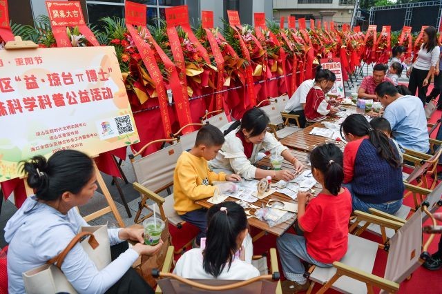 活动还设置了多元互动体验区,吸引各年龄层市民参与。琼剧化妆体验区里,孩子们化身“小戏骨”,对传统艺术充满好奇;“点心小学堂”内,大家在师傅指导下亲手制作老爸茶经典点心,香气四溢;“益・琼台π博士”文明实践区则通过“手摇发电机”等趣味实验,增进亲子科普互动。整场活动让市民在游园中深度感受文化魅力。