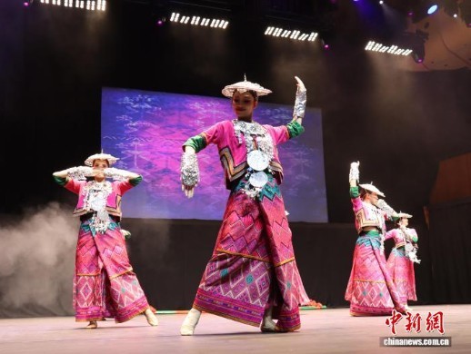 当地时间11月1日,由海口市艺术团打造的专场演出舞蹈诗《黎族家园》在澳大利亚悉尼歌剧院上演。 中新社记者 薄雯雯 摄