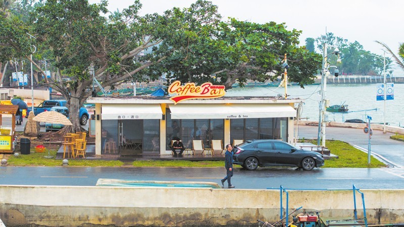 从市区驱车一个小时,前往美兰区曲口渡口的码头边,一间别致又充满文艺气息的咖啡屋映入眼帘。这是由废弃的老码头驿站改建而成。伴着落日余晖和凉爽海风,咖啡屋主理人刘森泽和顾客一边喝着咖啡一边闲聊,屋里散发出浓郁的咖啡香。咖啡屋已成为乡村文旅新IP。