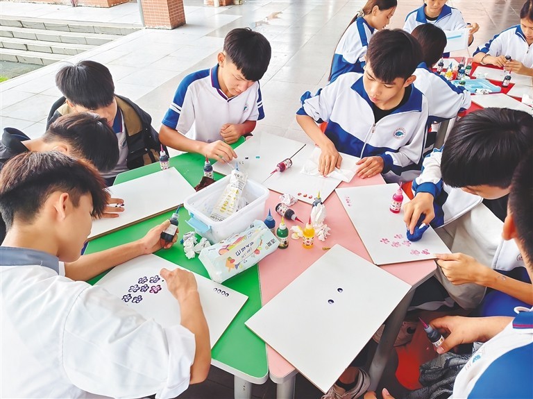定安县职普融通初中职业班的学生在进行果酱绘画。受访者供图
