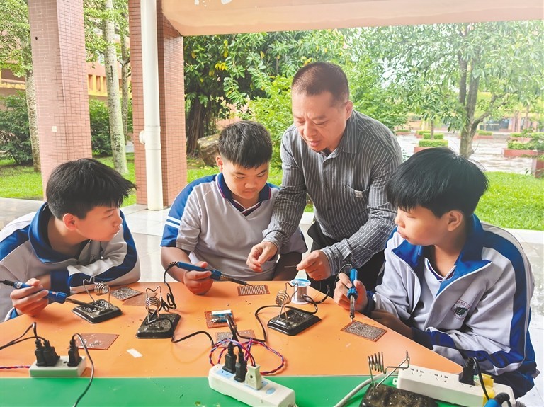 连日下雨,却浇不灭职普融通初中职业班学生上课的热情。“再重复一次,电子焊接的四步骤是‘一压、二加、三撤、四撤’。”开班第三天,海南师大定安县平和思源实验学校初三学生洪钰超终于等到了自己最期待的电子产品制作课程。