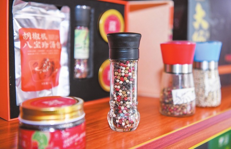 在“印象大坡”直营店展示的胡椒系列产品。本报记者 苏弼坤 摄