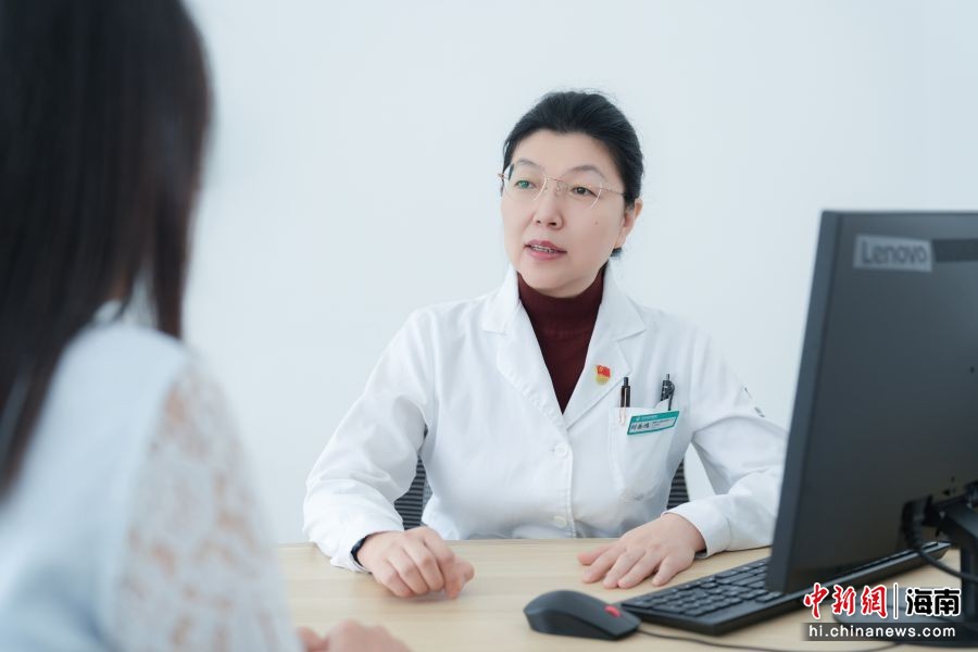 海南成美医院副院长、内分泌科主任医师刘岳鸿正在看诊。受访者供图