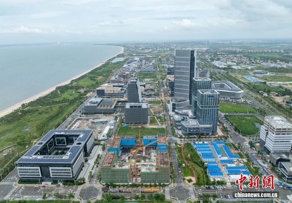 海口江东新区总部经济区(生态CBD)建设正酣,现代化楼宇拔地而起。(无人机照片)中新社记者 骆云飞 摄
