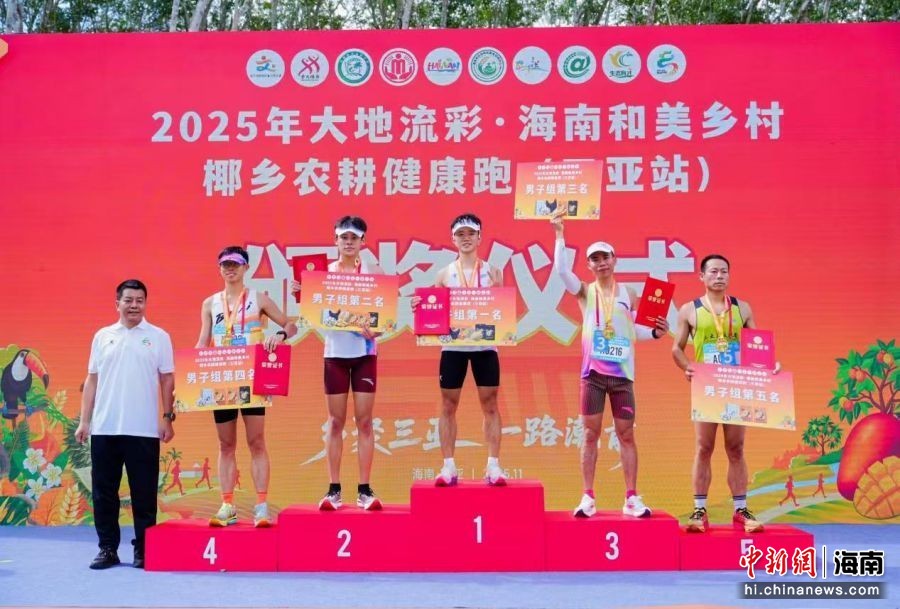 11月16日,2025年大地流彩·海南和美乡村椰乡农耕健康跑(三亚站)开跑。图为颁奖仪式。林梦颖供图