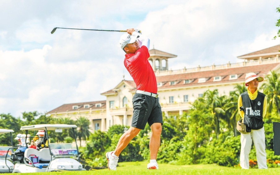 11月8日,第九届高尔夫超级联赛在观澜湖高尔夫球场举行,参赛选手在比赛中。现在,沙滩排球、帆船帆板、自行车骑行等各种文体赛事活动经常在海口举办,推动了文旅融合发展。 本报记者 康登淋 摄