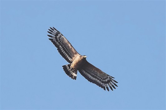 薛美丽的相机里记录过很多猛禽,但普通鵟的照片很少,而且还是在外地拍到的。“别看它名字里有‘普通’二字,它可不普通,在昌江非常少见。”她说,早年来湿地跟老师一起做生态监测时见过一次普通鵟,奈何当时手中无相机,未能留存影像,此后多年便再也没有在公园里与之重逢。