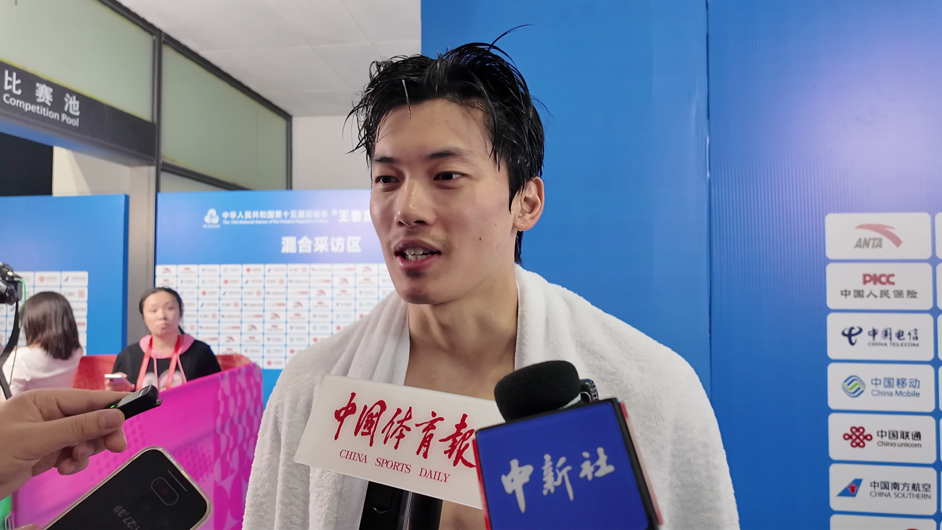 当记者问收获第2枚金牌有什么感觉时,莫家蝶开玩笑说:“也没有什么很好的感觉,现在稳住,收!肯定自己的同时,放松心态,我们后面还有比赛。”