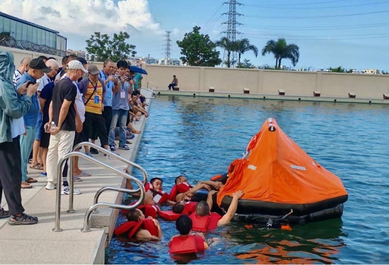 在实操与演练环节中,学员们分组参与船舶故障排除、消防救生设备使用、有毒有害气体防护、海上搜救协作及医疗急救等实战场景模拟,在专业指导下锤炼遇险自救互救硬本领。