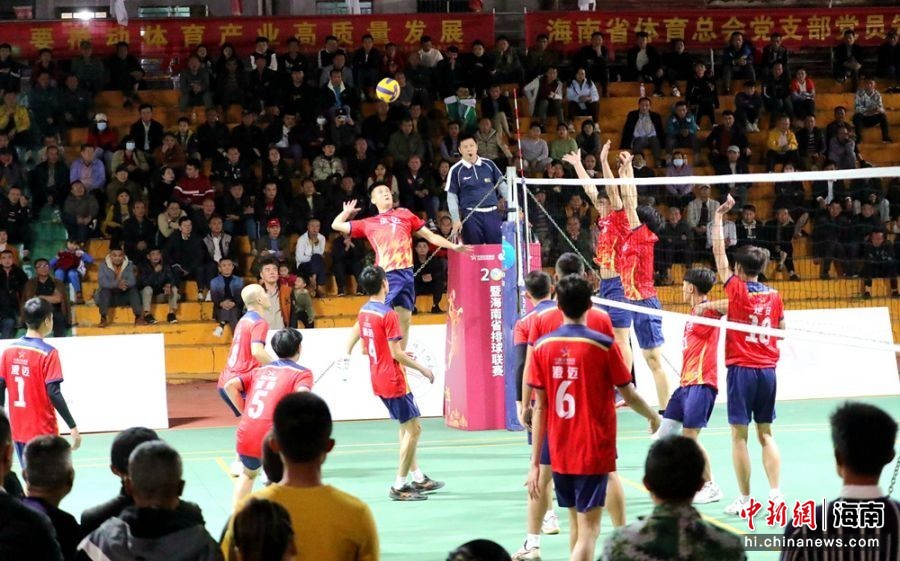 中新网海南新闻11月22日电 (王慧堂)2025中国(海南)九人排球邀请赛暨海南省排球联赛澄迈站B组最后一轮小组赛,21日晚在加乐镇文化广场打响。万宁队直落三局战胜省体职院队,四连胜稳居榜首;东道主澄迈队同样以3:0击败定安队,并反超对手升至B组第二位。