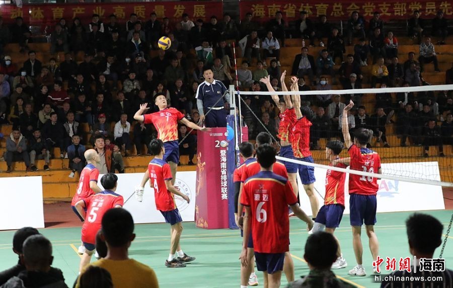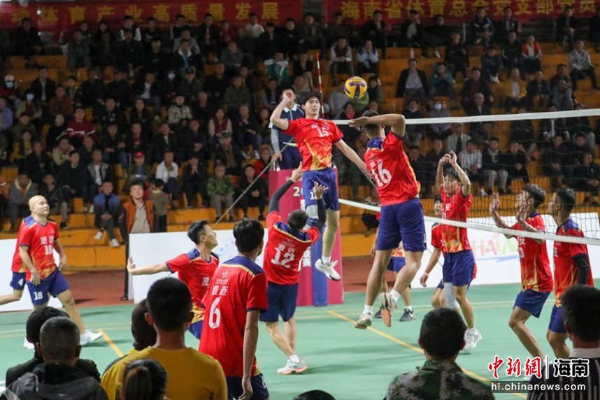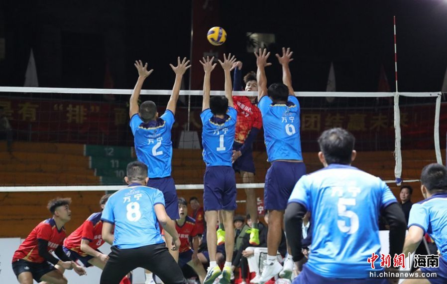 中新网海南新闻11月24日电 (王慧堂) 11月23日晚,2025中国(海南)九人排球邀请赛暨海南省排球联赛澄迈站在加乐镇文化广场B组小组赛第二轮收官。经过角逐,万宁队六战全胜稳居B组头名,强势晋级;东道主澄迈队、定安队均为3胜3负,但澄迈队则凭借积分优势力压定安队,夺得B组第二张晋级门票。
