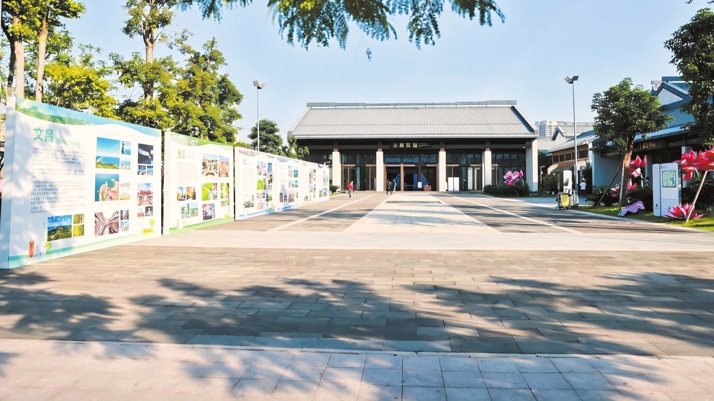 海瑞文化公园内,湛江与“海口经济圈”各市县旅游资源图文展正在举办。(市旅文局供图)