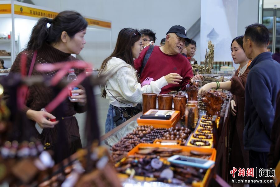 图为第二届海南沉香黄花梨国际交易会吸引民众前来。骆云飞 摄