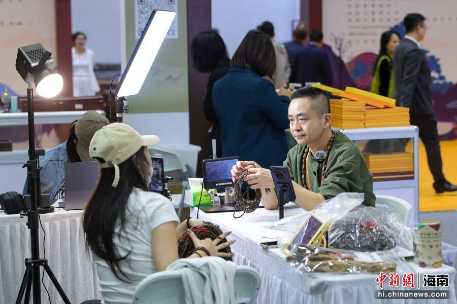 图为参观者在展会现场选购海南黄花梨手串。骆云飞 摄