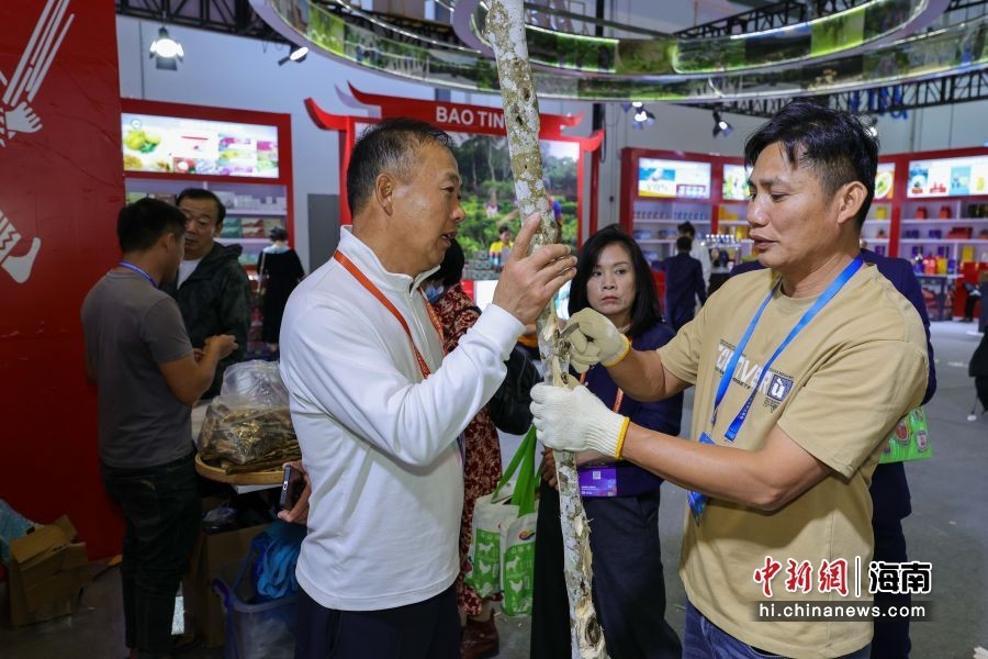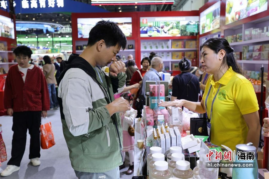 中新网海南新闻12月4日电(记者 骆云飞) 12月4日,2025年第28届中国(海南)国际热带农产品冬季交易会在海南国际会展中心开幕。本届冬交会保亭馆以“保亭柒鲜”品牌为核心,精心打造了图腾元素、非遗传承、民族元素、农业元素四大特色展区,从9个乡镇中甄选出23家优质企业与合作社进行展示销售。汇聚了红毛丹、榴莲、山兰酒、菠萝蜜鸡等特色产品,全方位展示区域农业发展新风貌。