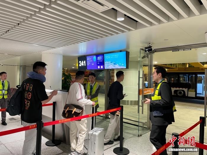 海口直飞韩国首尔航班旅客排队办理登机手续。 (海口美兰国际机场 供图)