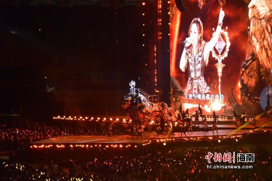 中新网海南新闻12月7日电 (张月和)12月6日晚,G.E.M。邓紫棋IAMGLORIA世界巡回演唱会2.0-三亚站开唱,现场演绎《摩天动物园》《来自天堂的魔鬼》《光年之外》《唯一》《句号》等歌曲。