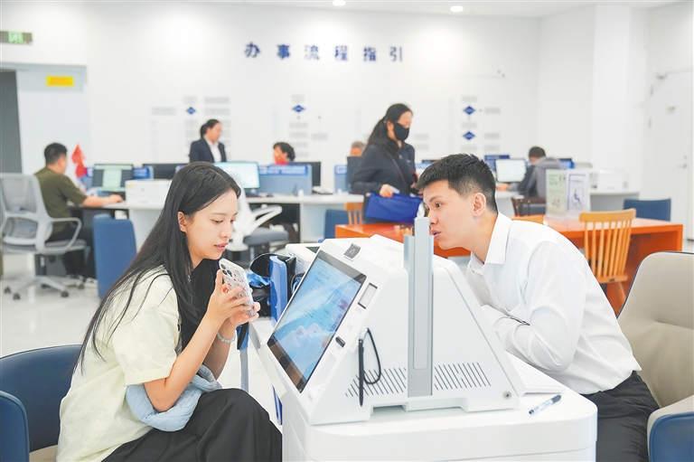 12月12日,三亚市政务服务中心工作人员为企业办理审批业务。