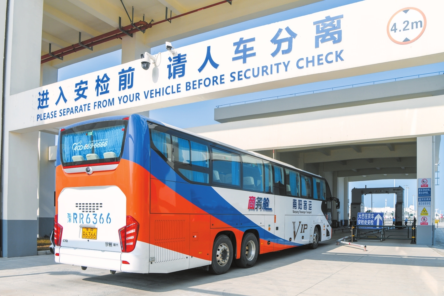 12月9日,海口南港客运站内,旅客与车辆有序通行,智能闸机的滴答声与工作人员亲切的引导声交织成一首“高效通关交响曲”。