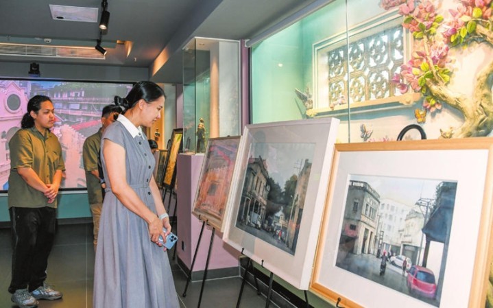 9月28日,市民游客在寰海阁·骑楼记忆艺术展参观游览。