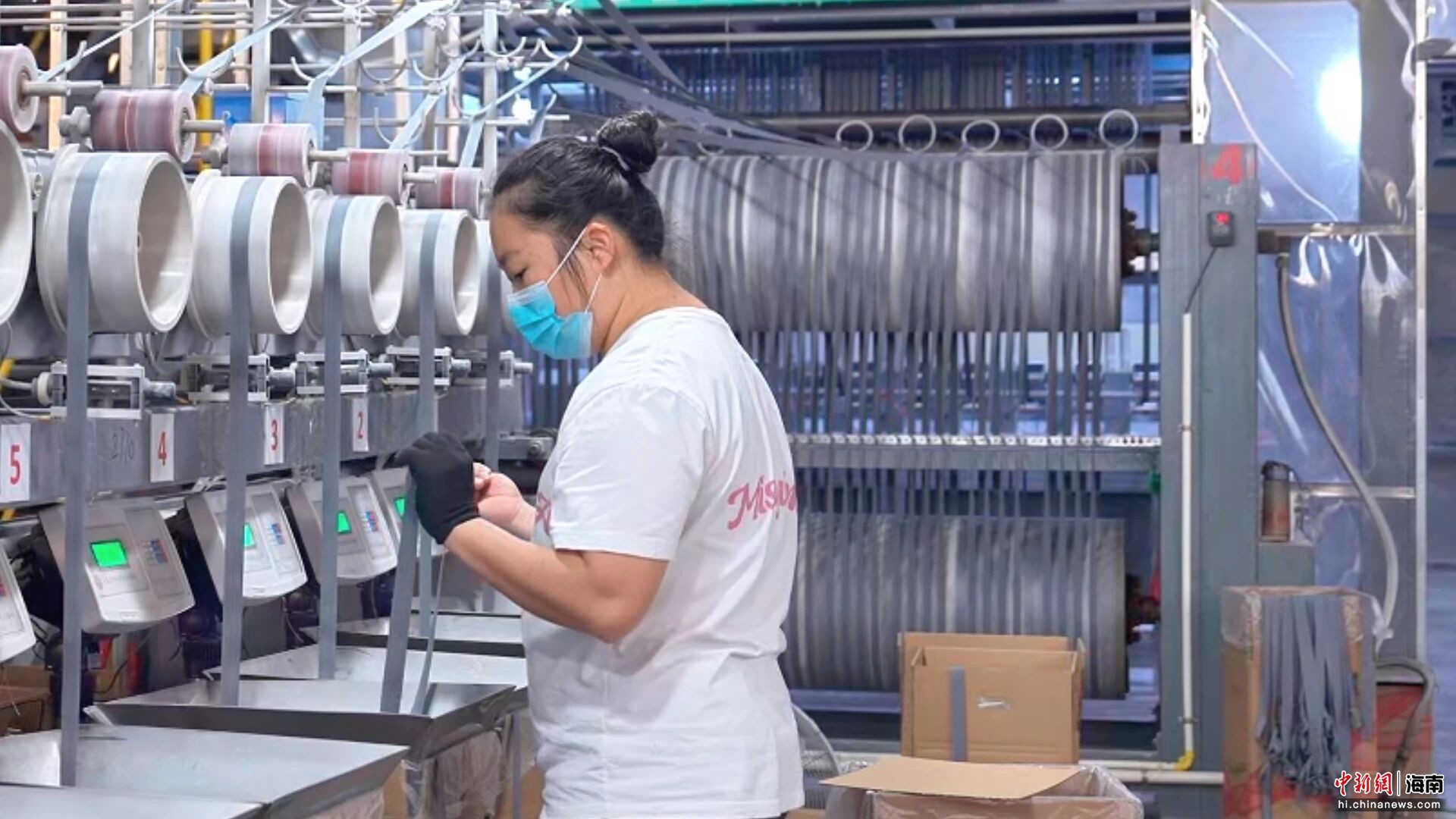 走进泰橡实业生产车间,在机器的轰鸣声中,多条生产线高速运转。工人们身着统一工装,在配料、挤出拉丝、酸固化、清洗、烘干等各道工序上专注操作,确保每一批产品都符合高标准。作为临高县第一家成功适用该政策的企业,其产品经过加工增值率达68.04%,超过30%的免关税门槛,有效提升了产品在内地市场的竞争力。