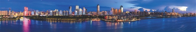 海口龙华区滨海大道夜景流光溢彩,沿岸楼宇群灯火璀璨,作为海口核心城区的龙华区彰显出蓬勃的城市活力。