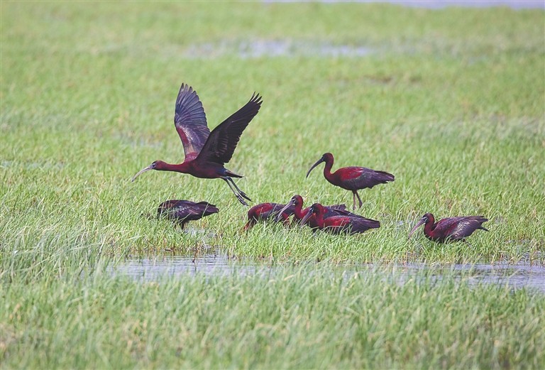 国家一级重点保护动物彩鹮现身海南昌江海尾国家湿地公园。薛美丽 摄
