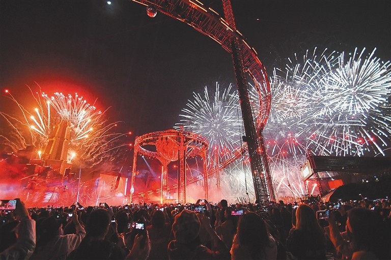 夜幕降临,在海南长影奇幻乐园,千架无人机与璀璨烟花共舞,为华晨宇演唱会收官站点亮梦幻夜空;五源河体育场内,Katy Perry中国巡演收官站,让全球歌迷沉浸在欢乐与潮流的氛围中。