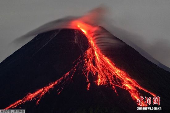 印度尼西亚默拉皮火山喷发 熔岩喷涌流淌