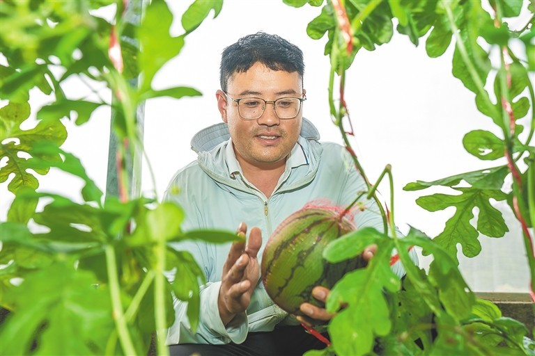 在位于三亚市崖州区的海南农垦南滨良种繁育基地大棚内,海南省农垦科学院集团有限公司组织人员种植新品种西甜瓜。目前,大棚已经种植了“青玉”“黛玉”“罗密欧”等11个优良品种的西甜瓜。 文/海南日报全媒体记者 邓钰 图/海报集团全媒体中心记者 蒙美顺