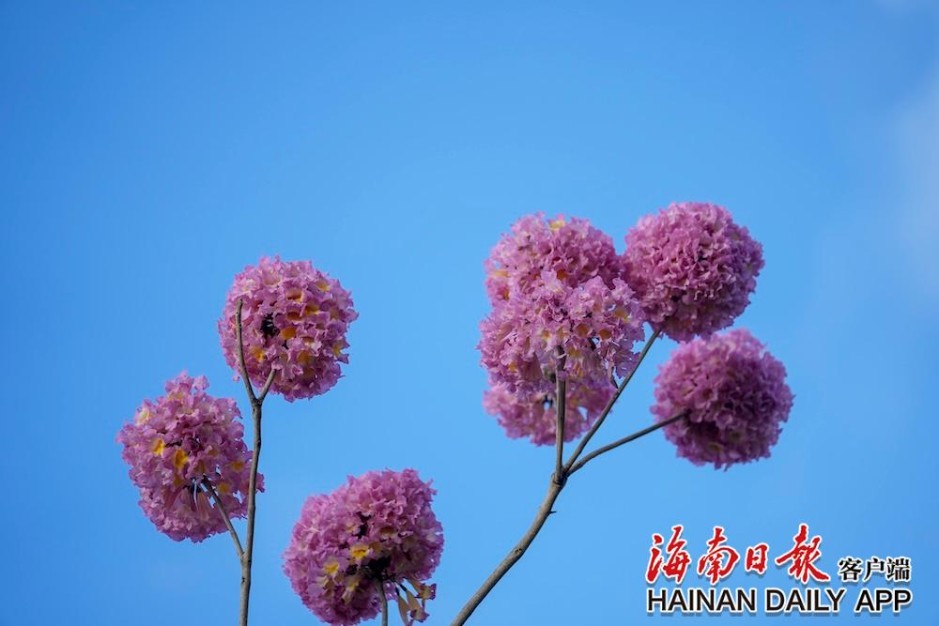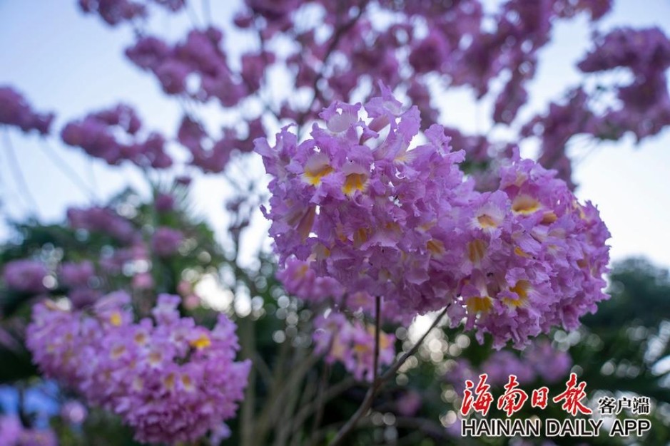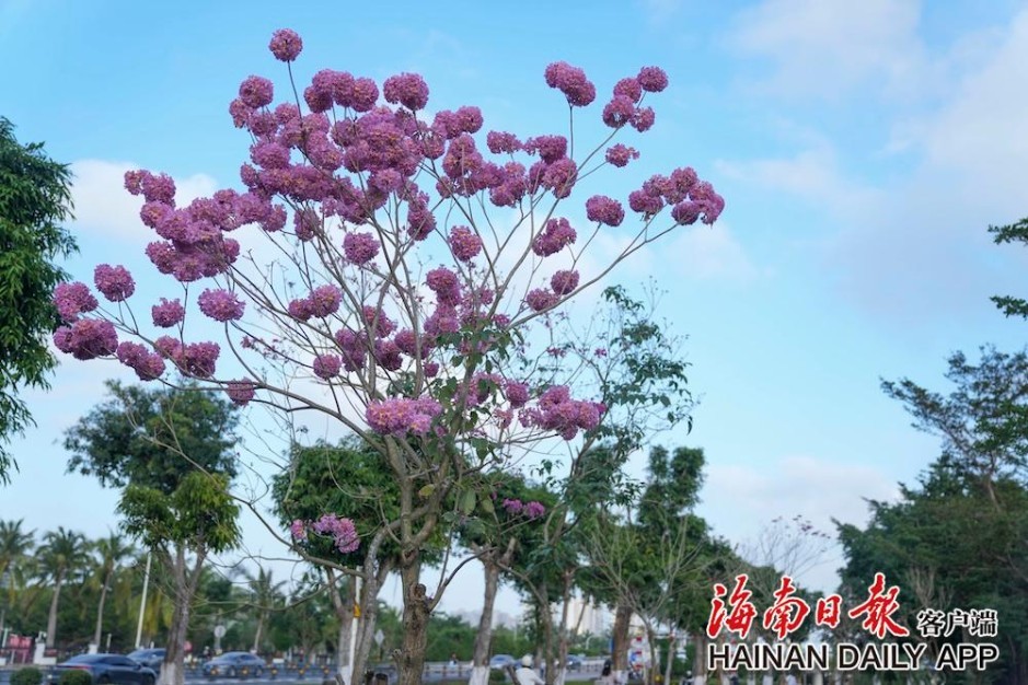 12月23日,海口国兴大道上的紫花风铃木花朵成簇开放。海南日报全媒体记者 李天平 摄