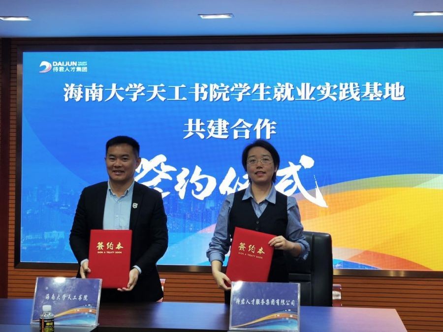 12月30日上午,海南大学天工书院与待君人才服务集团有限公司合作设立的“学生就业实践基地”签约暨揭牌仪式顺利举行。双方将在人才培养、实习实践、就业服务等方面展开深度合作,共同助力高校毕业生实现更高质量就业。