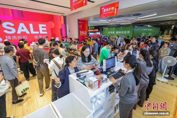 cdf海口国际免税城销售专员蔡文依说,海南自贸港封关后客流明显增长,店内折扣、满减力度很大,吸引各地消费者前来海南购物。(完)