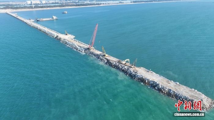 1月1日,八所港高排港区一期工程正在进行防波堤建设。中交广航局 供图