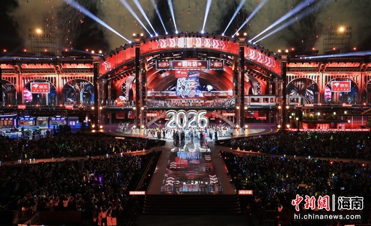 跨年夜,海口五源河体育场星光熠熠,2025-2026湖南卫视、芒果TV跨年演唱会在此举行。超百组明星齐聚,打造了一场顶级的视听盛宴,场内数万观众手持荧光棒,欢呼声与音乐声响彻夜空。