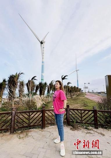 图为祖籍海南文昌的邢诗琦在海南环岛旅游公路文昌木兰湾段参观游览。邢诗琦 供图