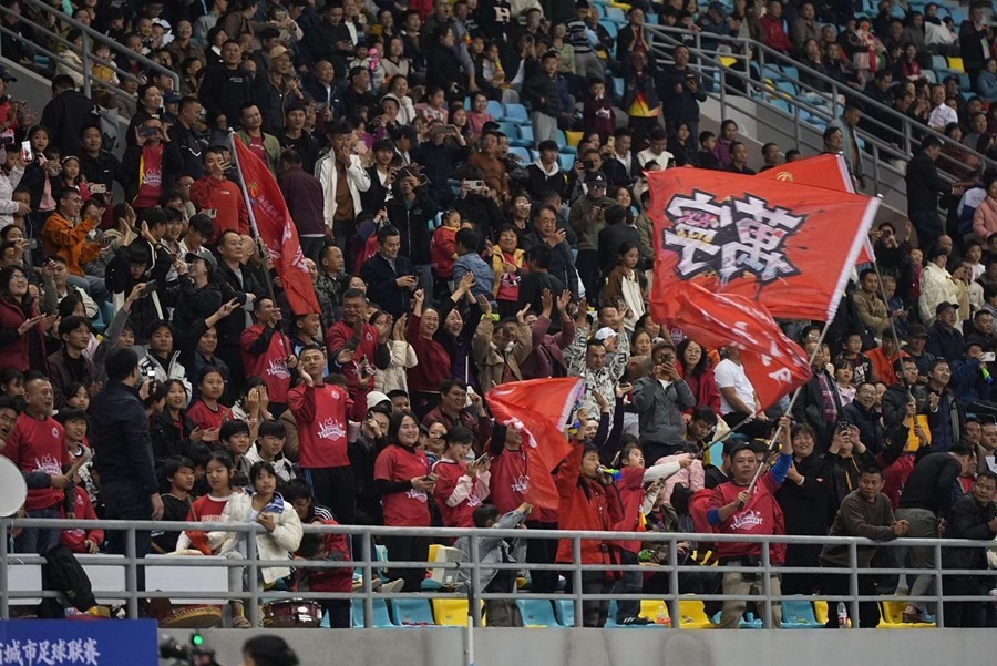 本场比赛吸引了五千余名球迷到场助威。看台上旗帜飘扬,阵阵鼓声与呐喊此起彼伏,热烈的氛围不仅点燃了赛场激情,更充分展现了万宁“足球之乡”蓬勃的体育活力与全民参与的体育热情。