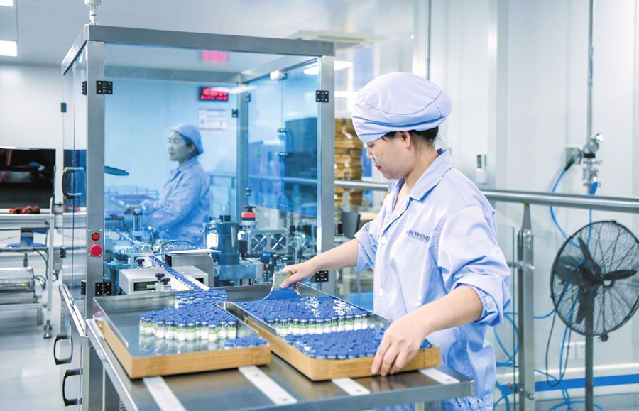 1月7日,在海口国家高新区药谷工业园的海南倍特药业有限公司内,工作人员正在各个岗位上忙碌着,生产研发工作紧张有序推进。