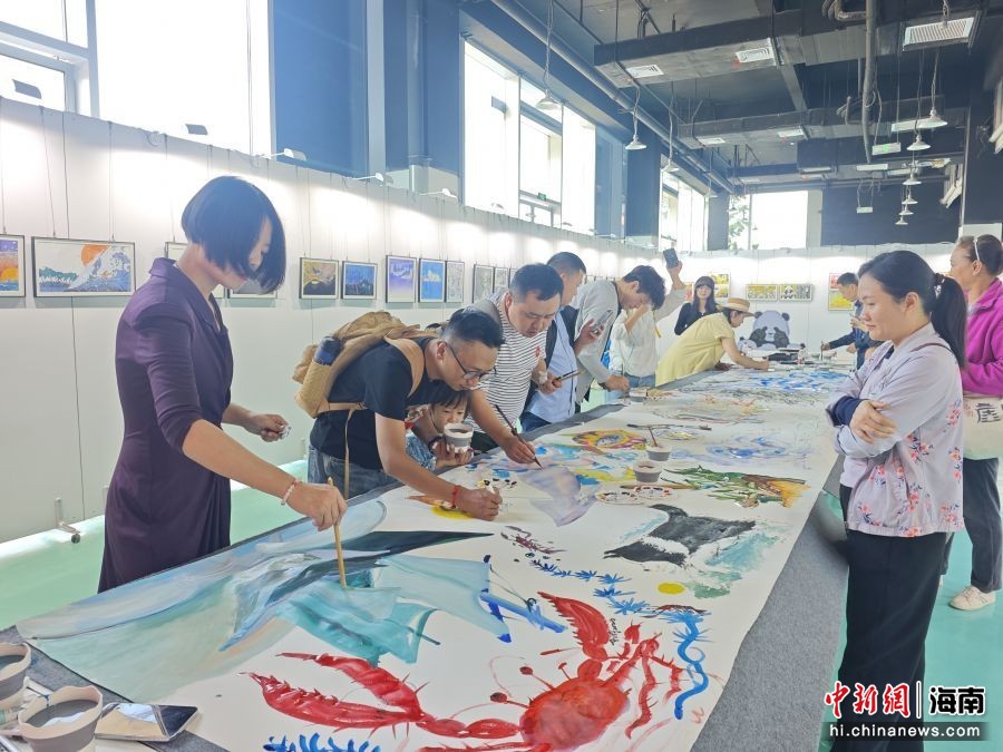 1月24日,第三届三亚崖州湾插画艺术节在三亚崖州文体中心艺术馆开幕。图为艺术家现场共创插画作品。张月和 摄