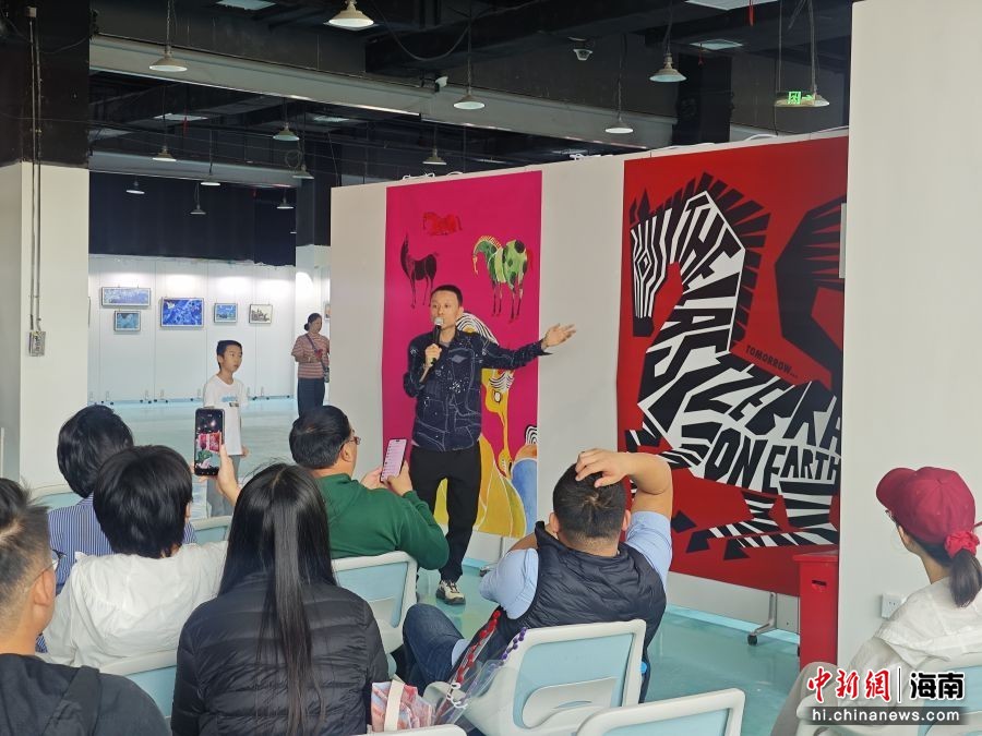 1月24日,第三届三亚崖州湾插画艺术节在三亚崖州文体中心艺术馆开幕。图为艺术家向观众介绍作品理念。张月和 摄
