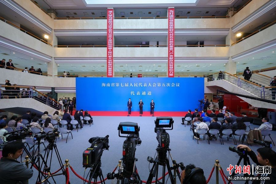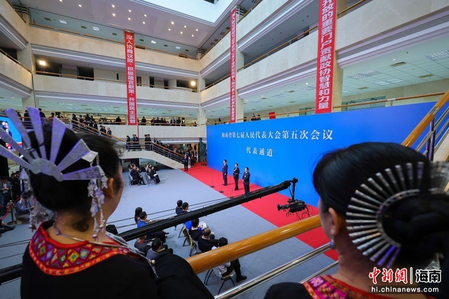 图为海南省第七届人民代表大会第五次会议“代表通道”举行。骆云飞 摄