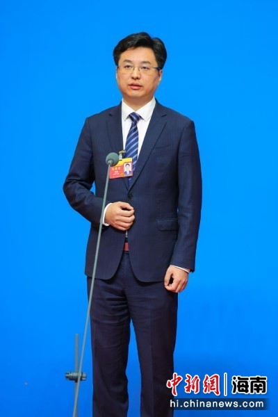 图为海南省人大代表,海南博鳌乐城国际医疗旅游先行区管理局局长傅晟亮相“代表通道”并回答记者提问。骆云飞 摄
