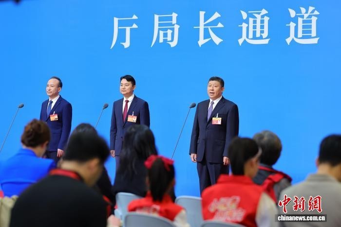 1月29日,海南省七届人大五次会议举行“厅局长通道”,海口海关关长高瑞峰(右)回答记者提问。中新网记者 骆云飞 摄