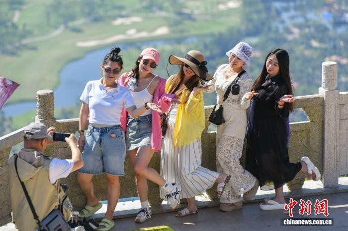 2025年11月14日,游客在三亚亚龙湾热带天堂森林旅游区拍照打卡。中新网记者 骆云飞 摄