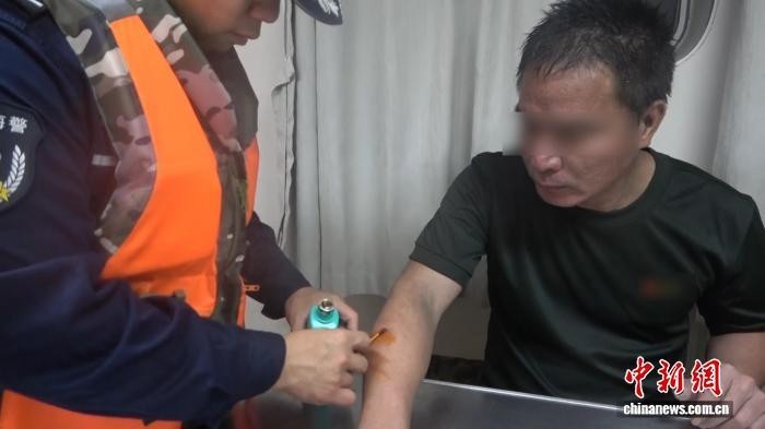 海南海警救援人员为获救男子开展初步身体检查并处理伤口。海南海警局 供图