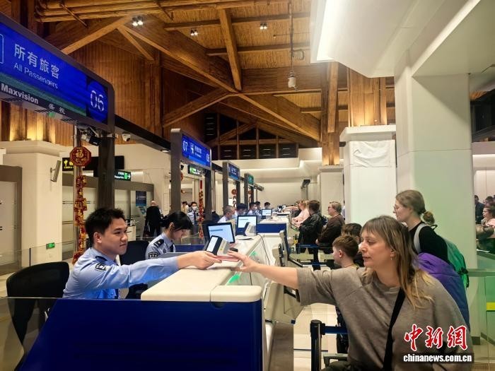 2月1日,凤凰出入境边防检查站执勤民警为入境旅客办理通关手续。 章晨 摄